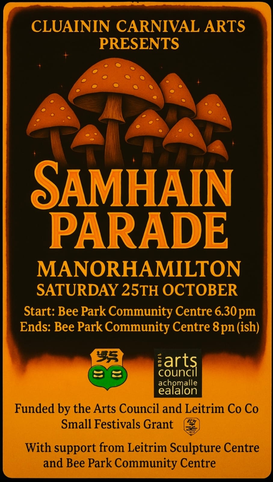 Samhain Parade, Manorhamilton from 2001 β 2006, 2017-2024: director, designer, maker, community workshop leader.